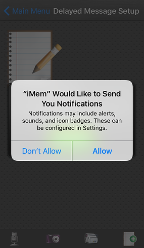 Note: The message will send even if your device loses its connection to the Internet. When you first activate a delayed message, a copy is immediately sent to the iMemorized server. The server is responsible for transmitting the message from that point, but you can cancel it from the app at any time.